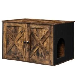 [Stilvolles Katzenklo] Mit seinem rustikalen Stil und den schicken Scheunentüren fügt sich dieses Katzenklo problemlos in die meisten Wohnstile ein und verwandelt das stille Örtchen Ihrer Katze in einen echten Blickfänger [Mehr Privatsphäre, weniger Geruch] Dank der geschlossenen Konstruktion bietet diese Katzentoilette einen privaten Ort, an dem sich Ihre Katze sicher fühlt, um ihre Notdurft zu verrichten und es entsteht weniger Schmutz – eine Win-Win-Lösung! [Geräumiger Innenraum] Mit einer Größe von 50 x 50 x 46 cm bietet das Hauptfach dieses Katzenschranks genug Platz für die meisten Katzentoiletten. Sie können auch die Trennwand entfernen, um die Fläche auf 74,9 x 50 x 46 cm zu vergrößern [Für Ihre Katze und Sie] Stellen Sie ein Katzenklo hinein, verwenden Sie es als Beistelltisch oder stellen Sie ein Katzenbett hinein, um einen gemütlichen Unterschlupf zu schaffen [Kinderleichte Montage] Ihre Katze kann es kaum erwarten, ihr neues Möbelstück auszuprobieren? Kein Problem, denn mit einer Schritt-für-Schritt-Anleitung und beschrifteten Teilen ist dieses Katzenhaus in 20 Minuten fertigFeandrea Hinweise: